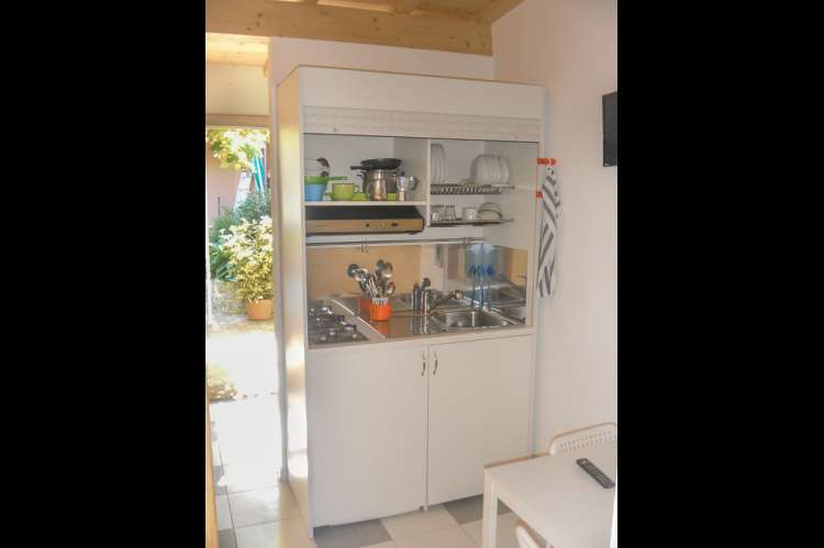Huset har en liten hage der begge leilighetene har direkte utgang til egne uteplasser. Orata er et lite hus og kan gjerne leies som et ekstra soverom i forbindelse med Gabbiano.