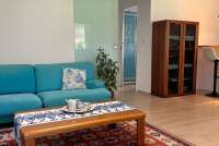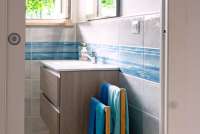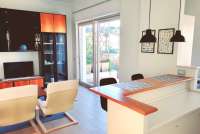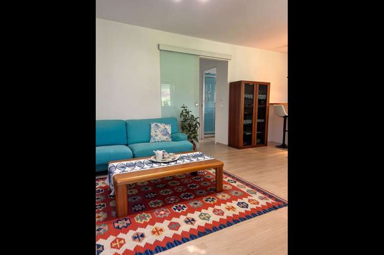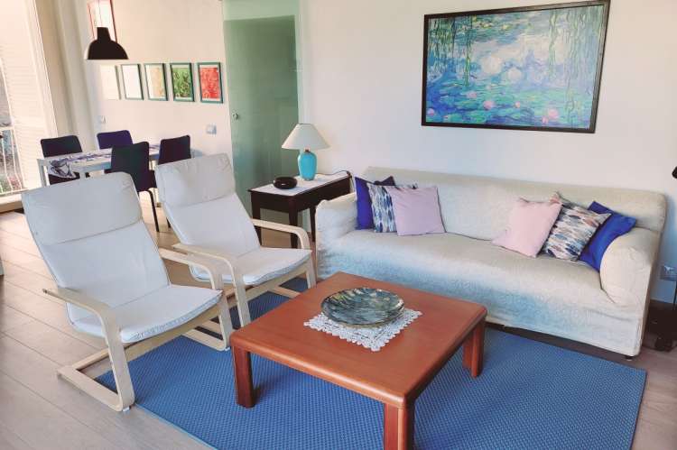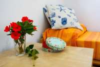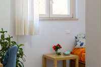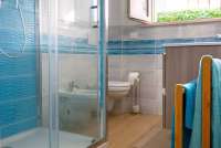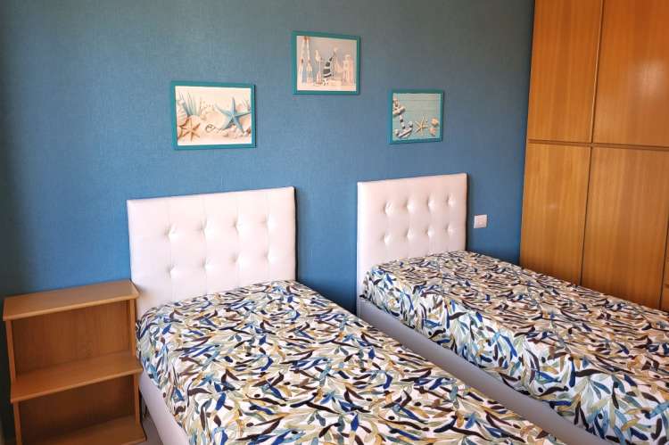 4 sengeplasser. 1 bad. Oppholdsrom med kjøkken, og direkte utgang til balkong. På bakkeplan er det hage og uteplass. Et soverom med dobbeltseng og et med to enkeltsenger. 75 kvm, 2. etg. med utendørs trapp.