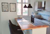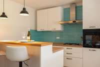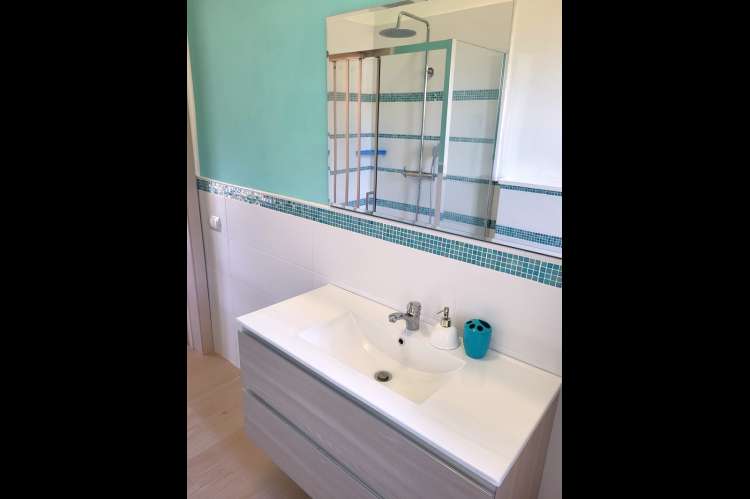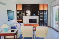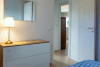 4 sengeplasser. 1 bad. Oppholdsrom med kjøkken, og direkte utgang til terrasse på 34 kvm. Et soverom med dobbeltseng og et med to enkeltsenger. Stor hage på 500 kvm. 75 kvm, 1. etg.