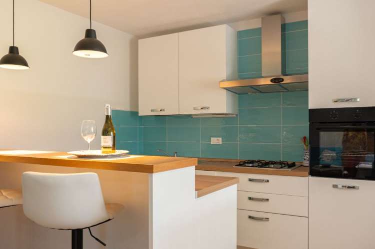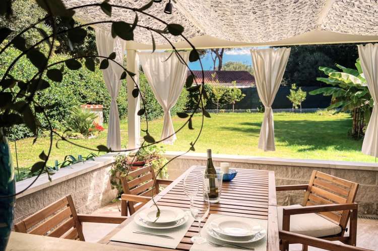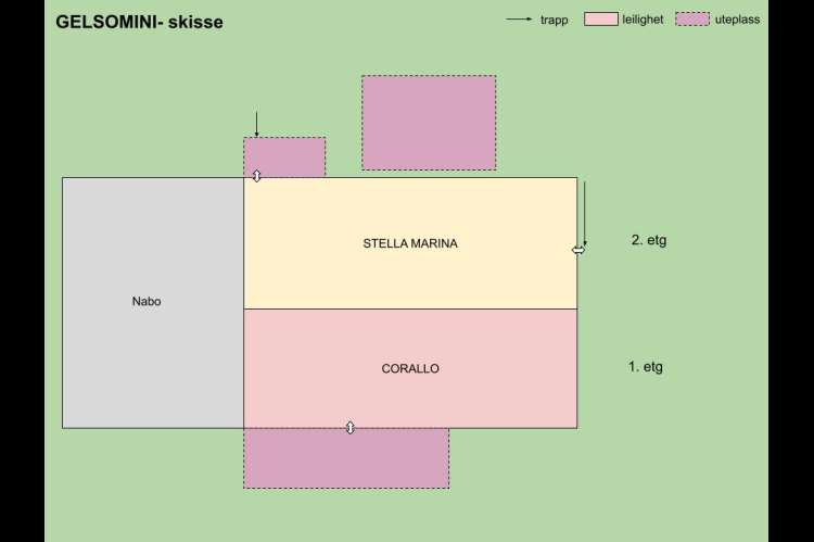 Huset Gelsomini er nyrenovert fra 2025. De to leilighetene har innganger og uteplasser på hver sin side av huset.